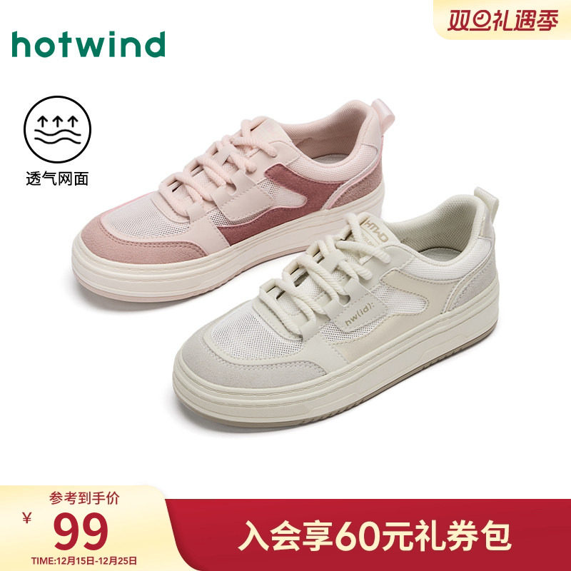 热风平底小白鞋女款2025年冬季新款网面透气百搭板鞋户外跑步女鞋
