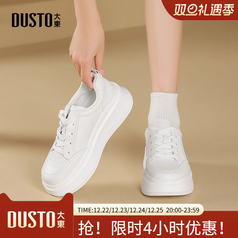 大东厚底板鞋女鞋2025春夏新款休闲圆头平底透气纯白小白鞋女0207