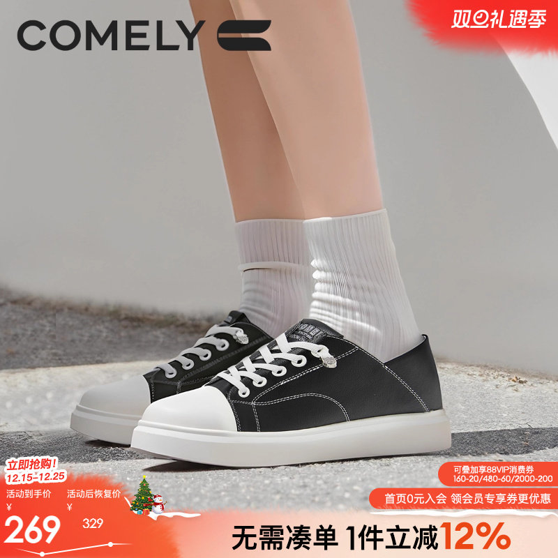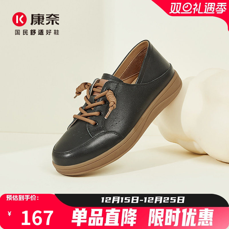 康奈时尚百搭休闲板鞋女平底透气真皮透气俩穿单鞋女小皮鞋阿甘鞋