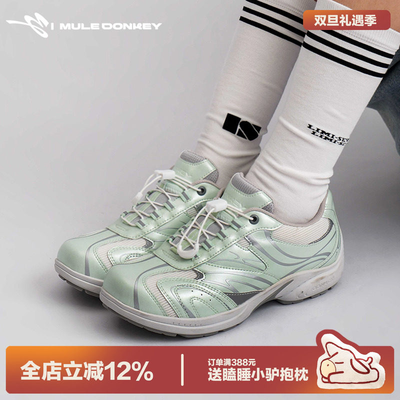 多嘴驴Donkey撞色拼接德训鞋女款小众平底网面透气赛车鞋休闲板鞋