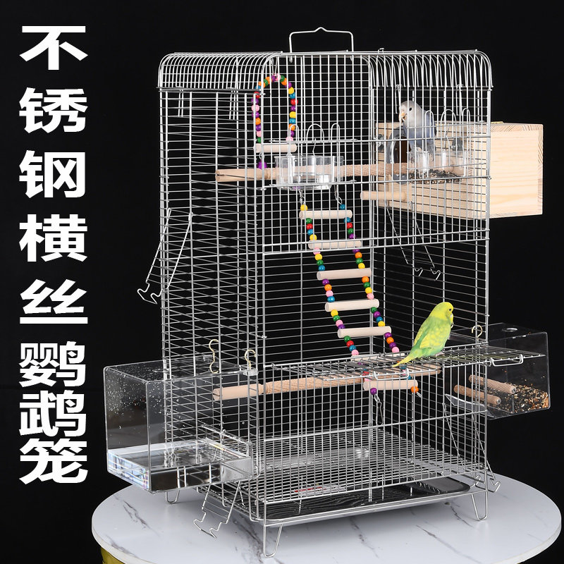 不锈钢鸟笼鹦鹉笼横丝玄凤虎皮牡丹专用笼子大号豪华别墅八哥笼子