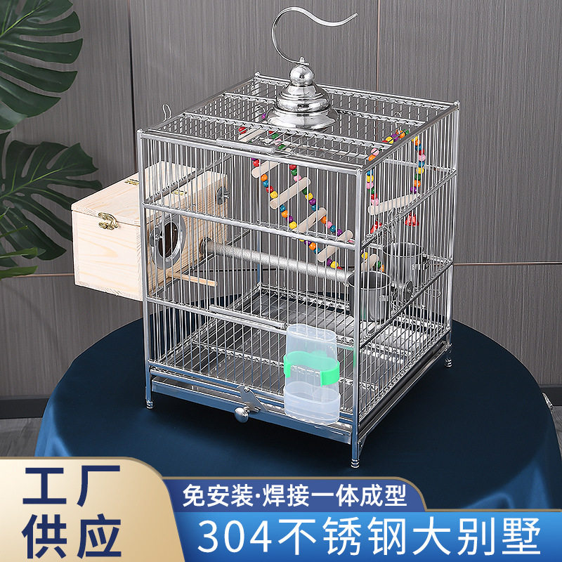 不锈钢鸟笼品质豪华别墅洗澡方形家用八哥笼子虎皮玄凤专用鹦鹉笼