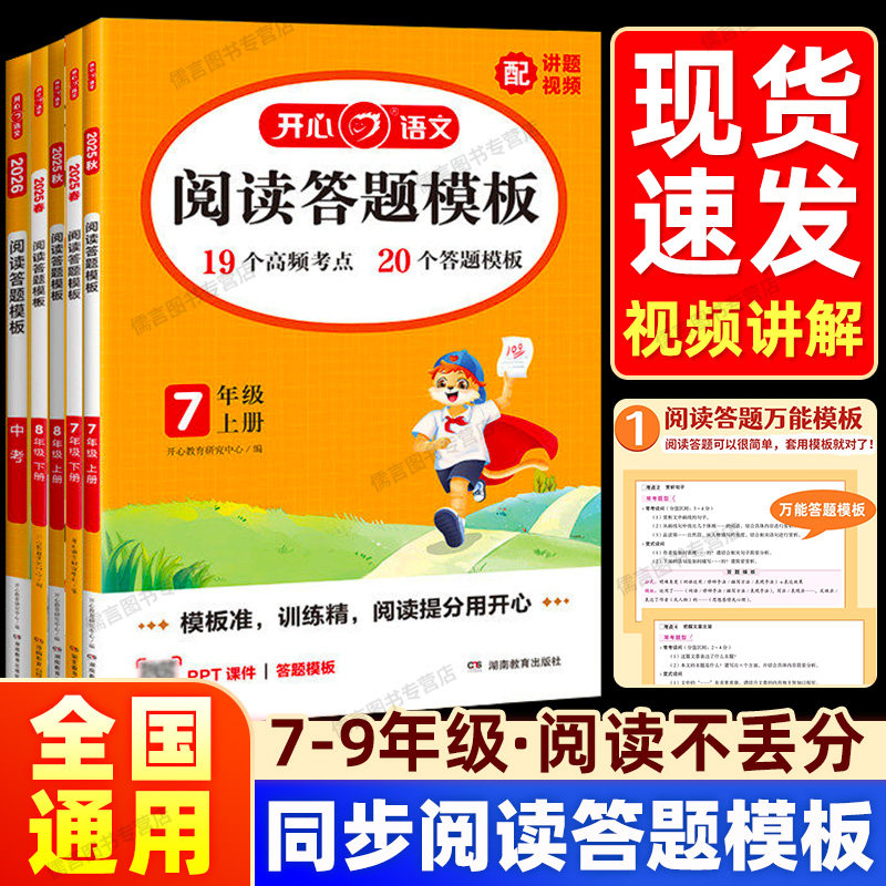 开心教育初中语文阅读答题模板七八九年级中考初一二三年级上册下册现代文时文阅读理解强化训练作文高频考点五合一阅读理解