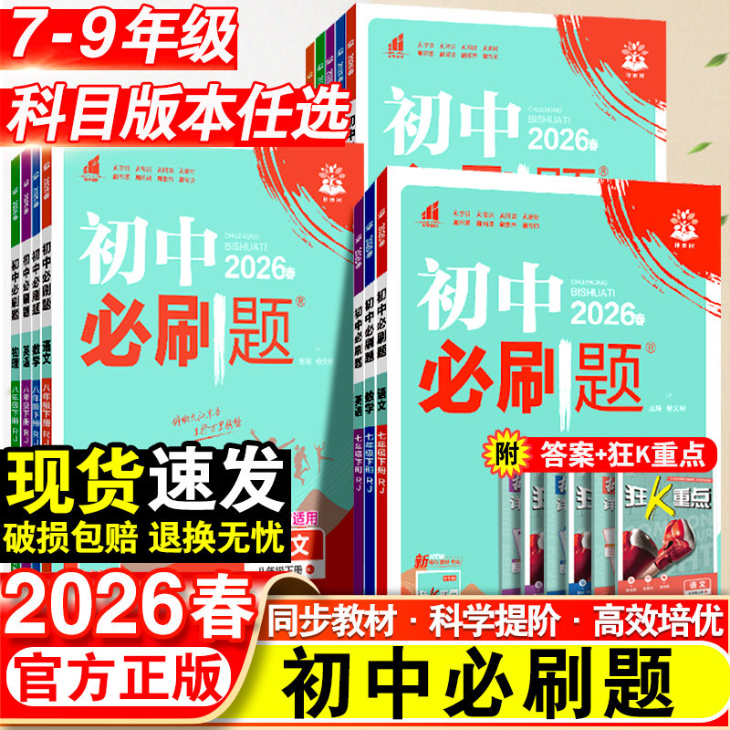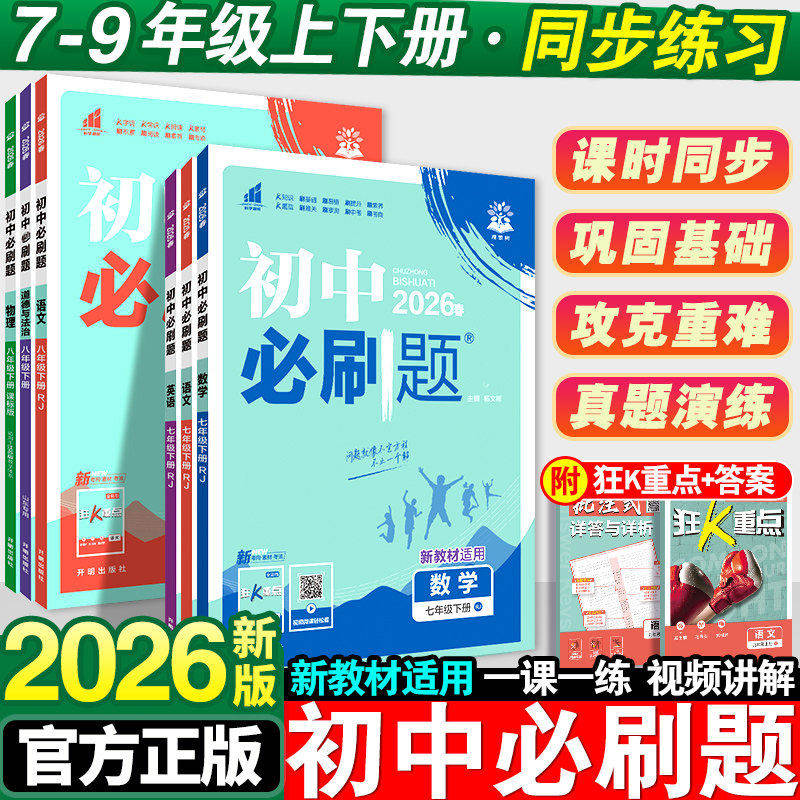2026版初中必刷题七年级八九年级上下册人教版北师沪牛数学语文英语物理化学生物地理政治历史小四门试卷七下初一二三同步练习册书