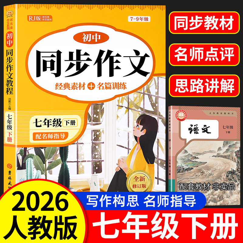 2026新版七年级下册语文同步作文人教版 初一7上学期教材书同步练习册优秀作文高分范文精选满分作文辅导大全中学生写作技巧书籍