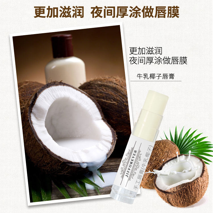 JIFF牛乳椰子润唇膏 保湿滋润补水 防干裂 天然手工无色 男女唇膜