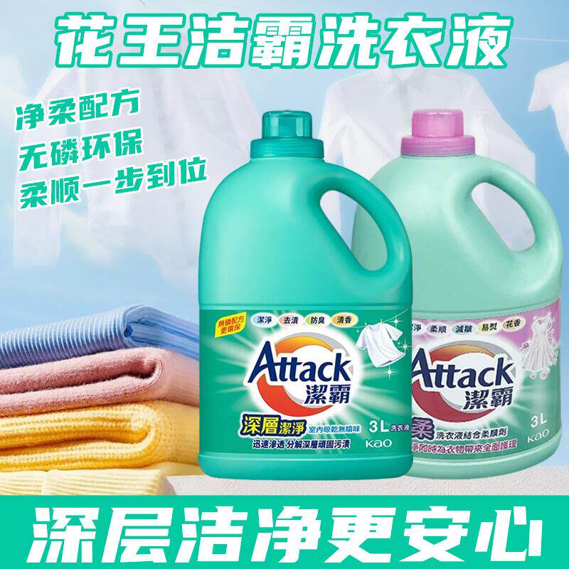 花王洁霸深层洁净洗衣液3L室内晾干无臭强力去污无磷配方更环保