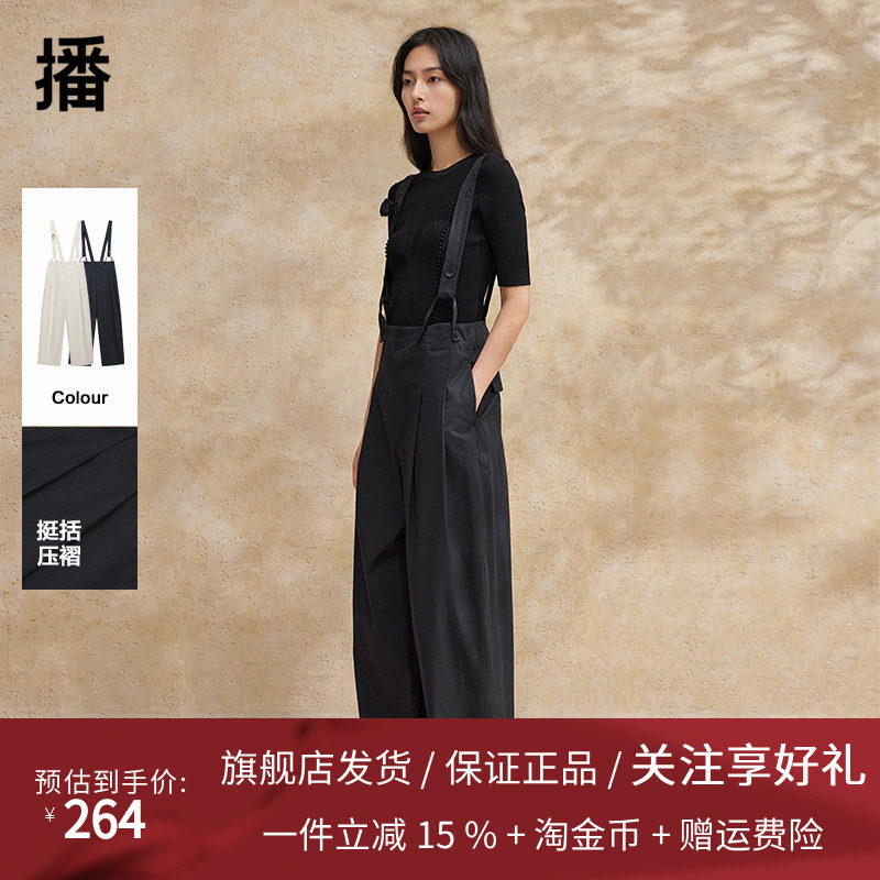 播黑色背带裤女2024夏季新款高腰显瘦休闲宽松直筒裤DDR2KD5768