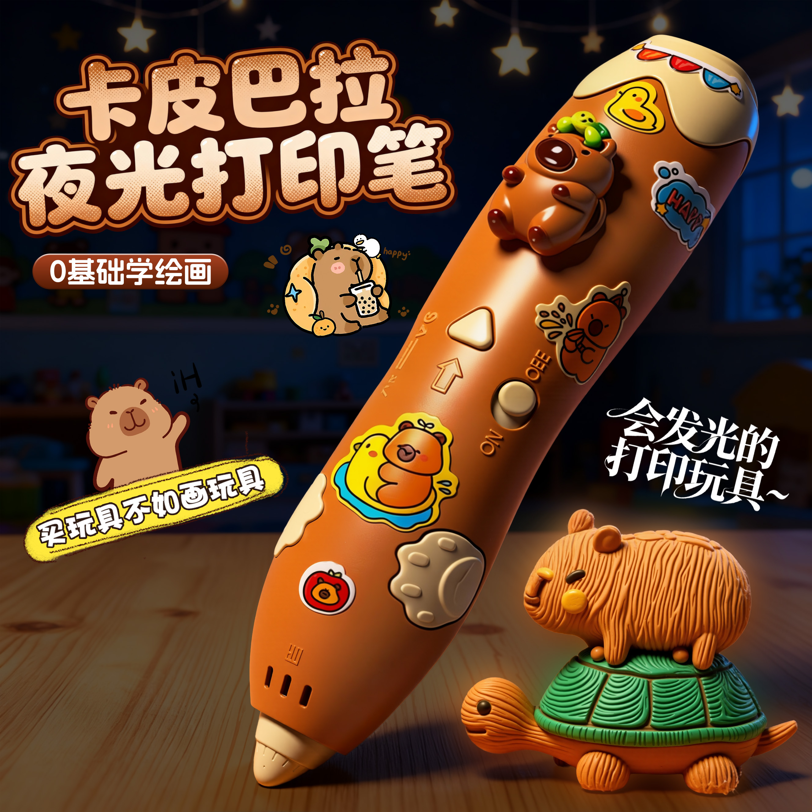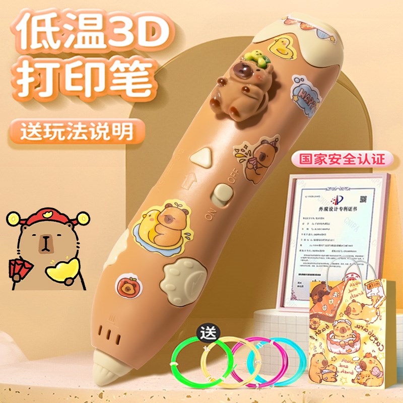 卡皮巴拉3d立体打印笔儿童款低温画画笔女孩玩具三地绘画笔的礼物