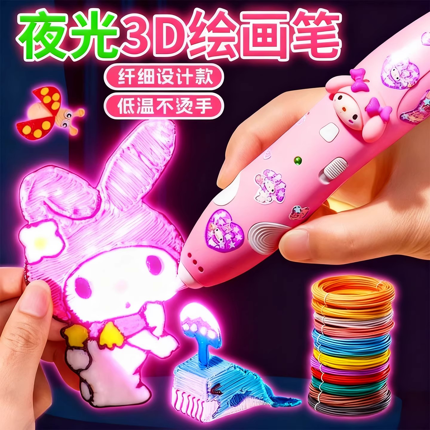 六一儿童节礼物美乐蒂3d立体打印笔儿童款库洛米低温不烫手涂鸦绘画笔小学生三d打印机笔神笔马良玩具创意diy