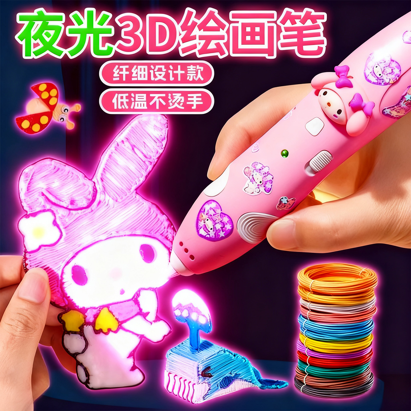 夜光3d立体打印笔儿童款低温耗材三3岁女孩子6小学生涂鸦绘画玩具