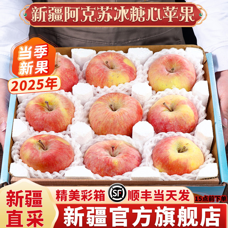 顺丰新疆阿克苏冰糖心苹果10水果新鲜当季整箱斤正品官方旗舰店甜