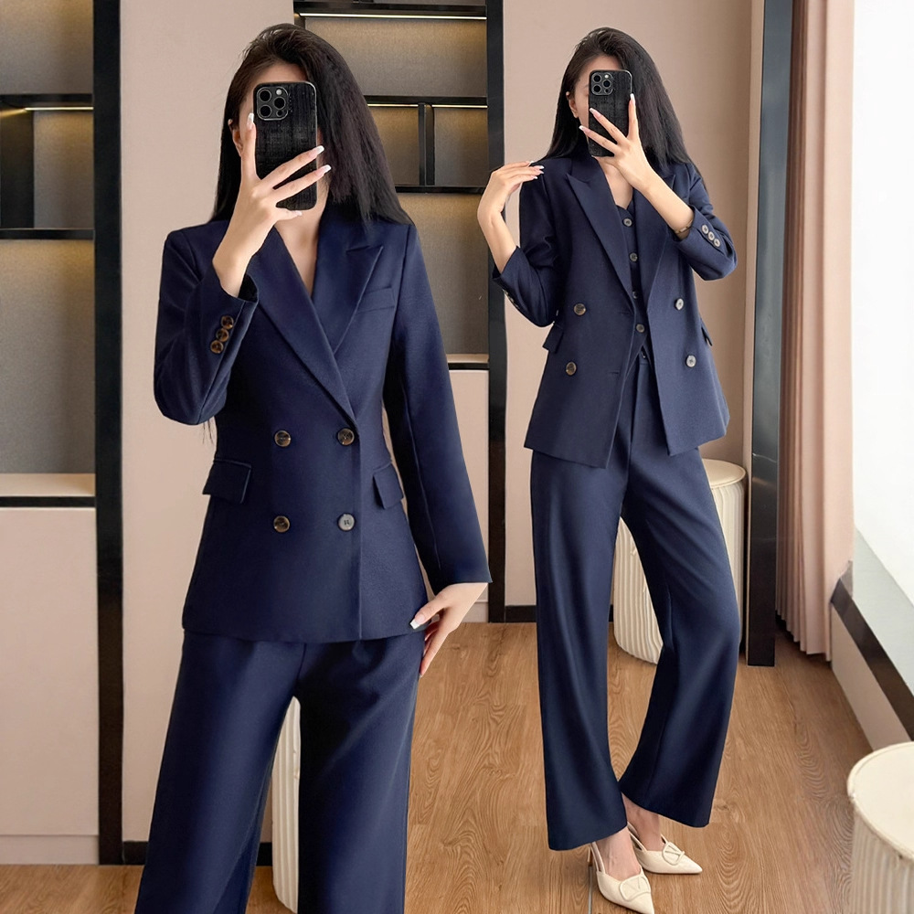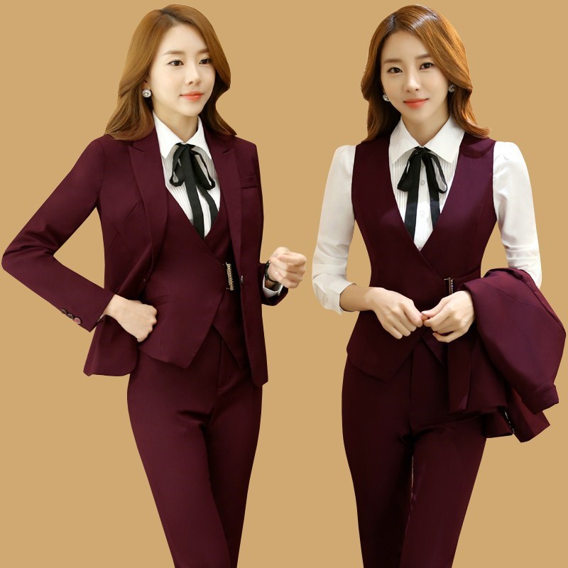 酒店工作服秋冬ol气质三件套职业装马甲女正装西服套装美容院工装
