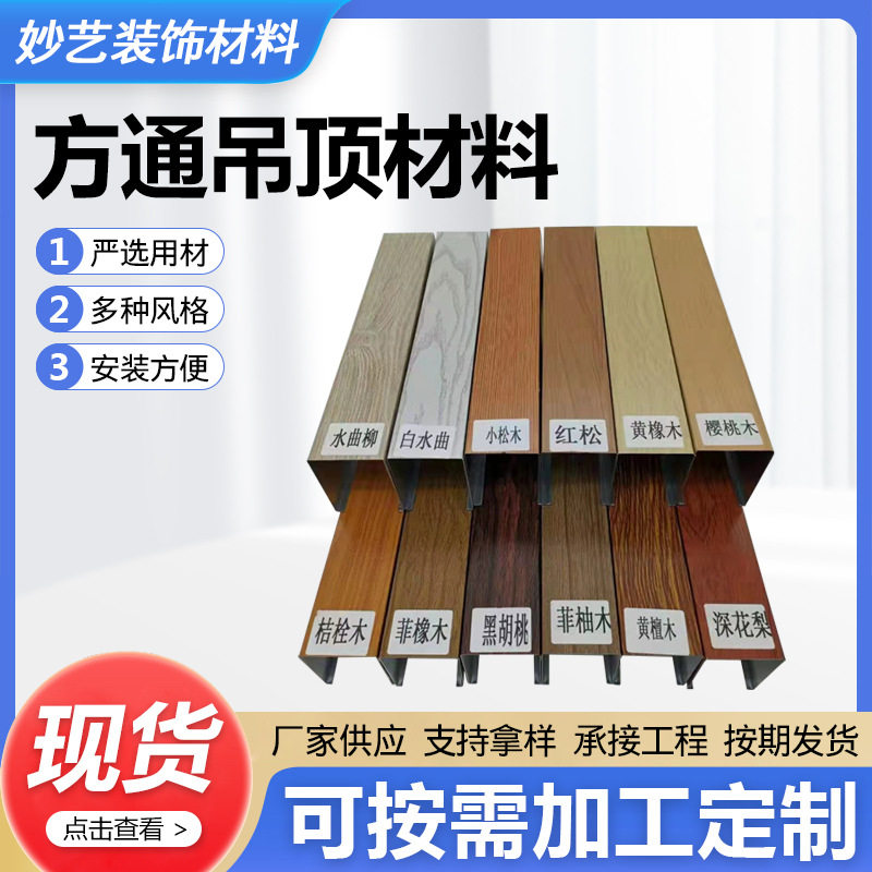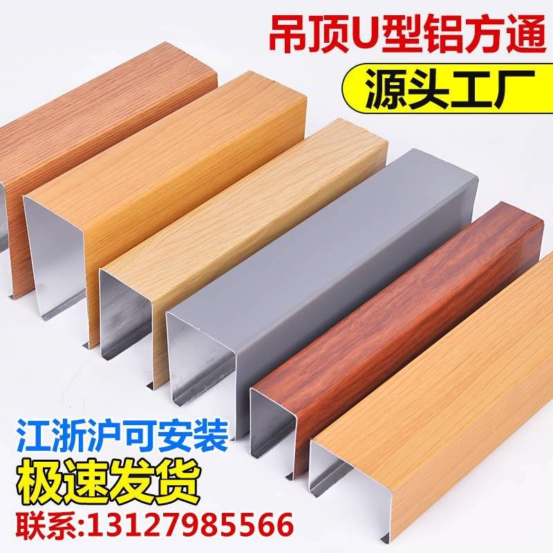 铝方通吊顶木纹铝格栅现货铝方管隔断u型方通办公室吊顶材料自装