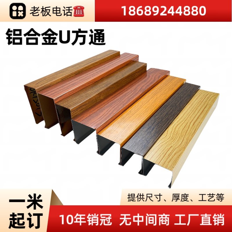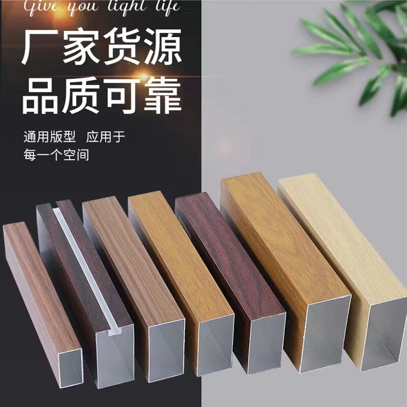 新品铝方通吊顶木纹铝合金方管隔断屏风u型方通铝格栅木纹铝方通