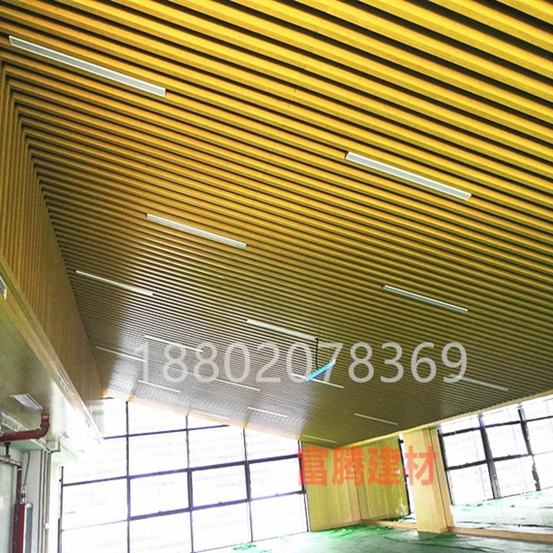 广东弧形方通吊顶大厅装饰黄木纹U型方通吊顶 铝天花弧形方通厂家