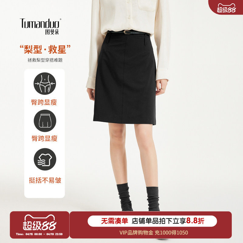 图曼朵黑色直筒西装半身裙女春职场面试半身a字半裙正装工装裙子