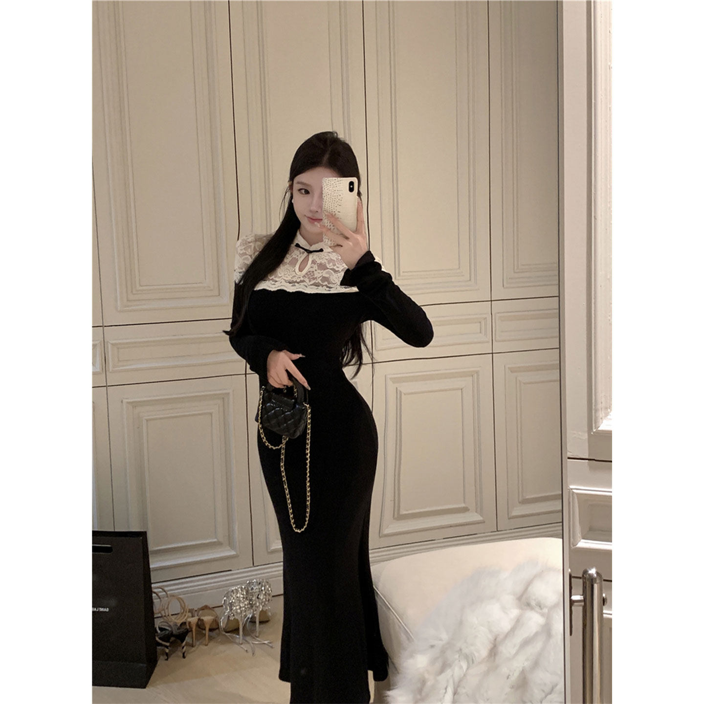 - 修身小黑裙连衣裙