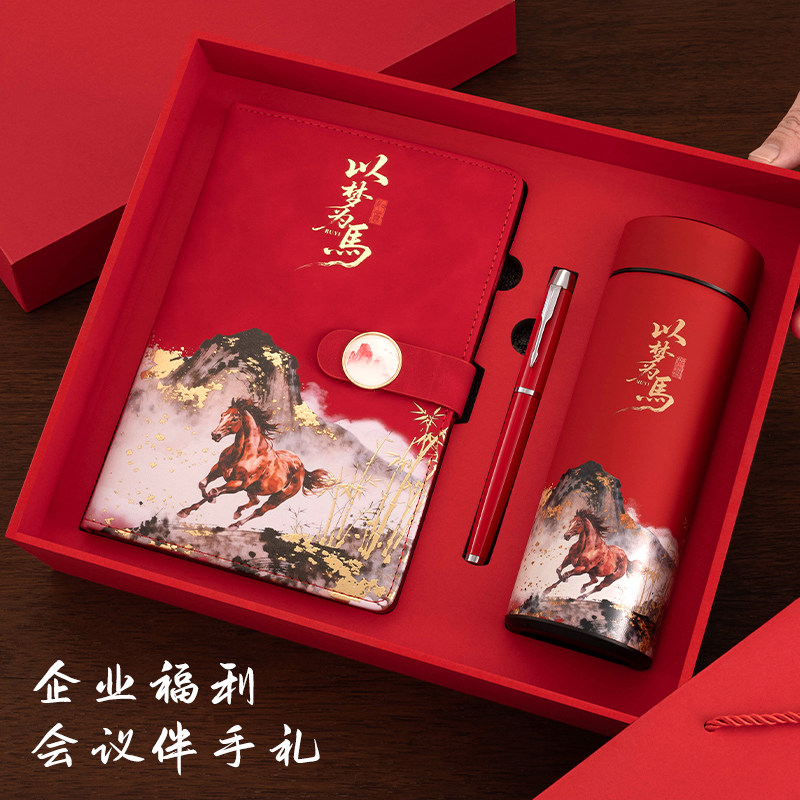 季左马年中国红A5笔记本2026年新款限定红色本子办公商务套装支持定制logo日记本企业伴手礼品礼物记事本礼盒