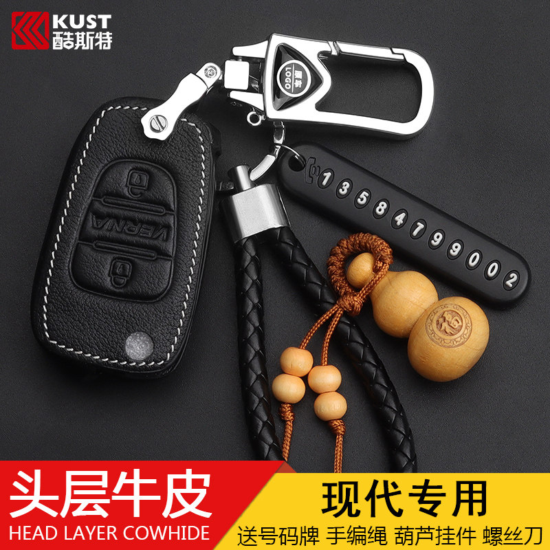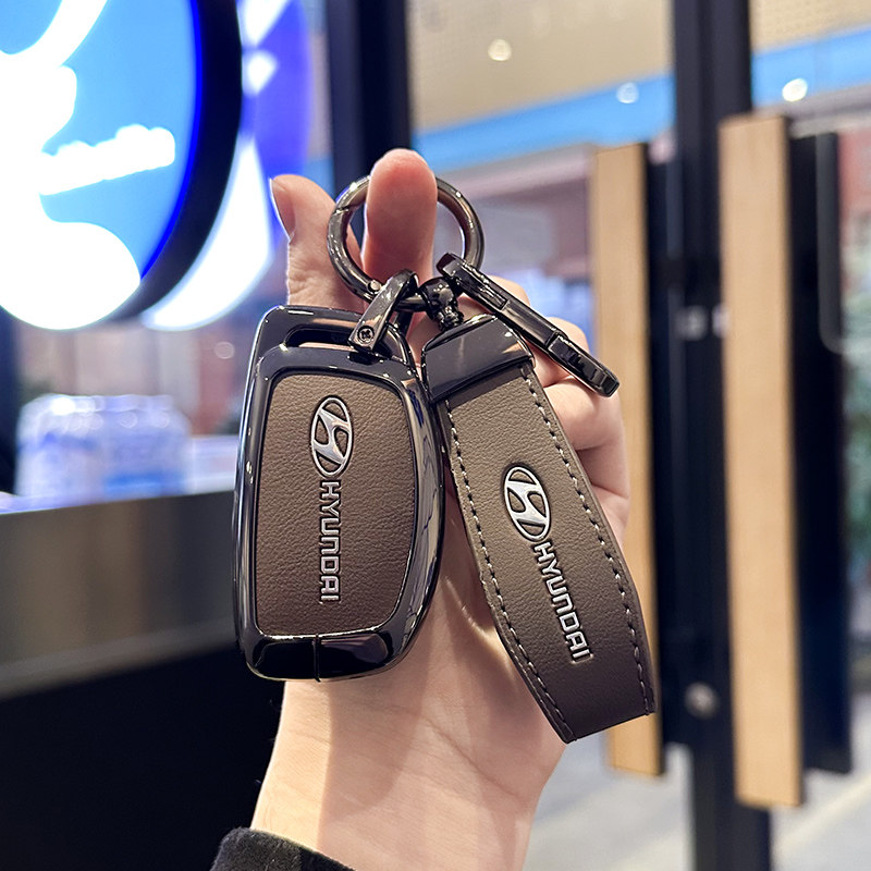 适用现代钥匙套领动朗动名图ix35瑞纳菲斯塔新胜达途胜真皮车包扣