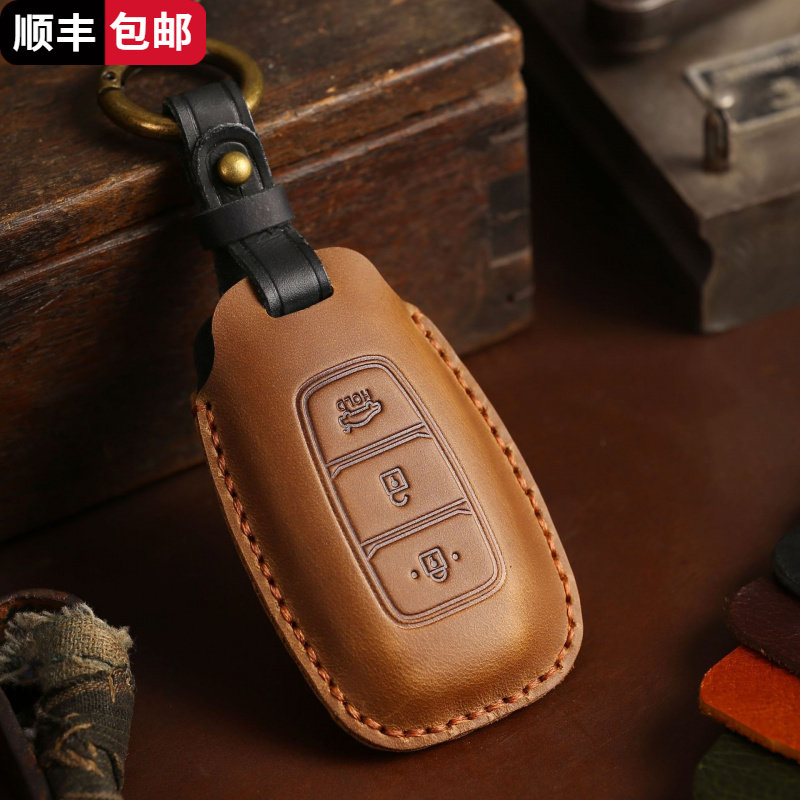适用北京现代ix35朗动25瑞纳名图悦纳领动专用途胜真皮扣钥匙包套