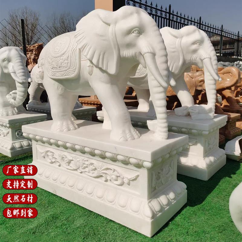 天然汉白玉石雕大象一对户外别墅庭院酒店家用门口招财镇宅石大象