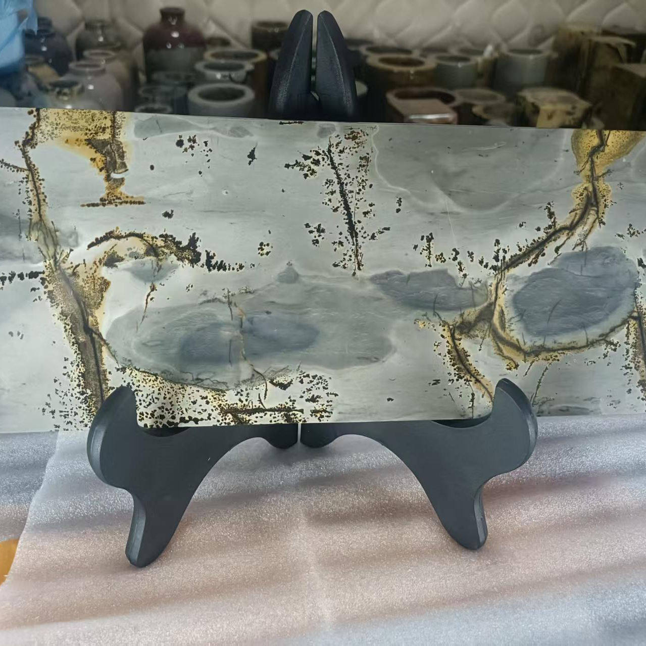 定做国画天然奇石花瓶笔筒四方柱实木底座摆件办公室玄关镇宅石头