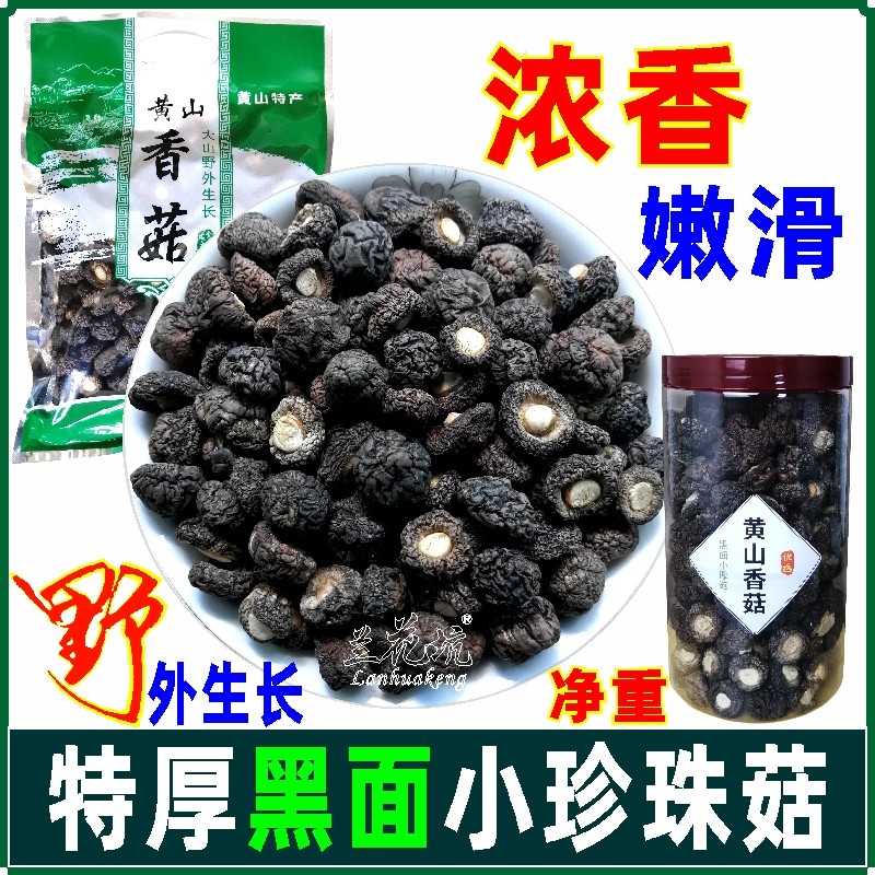 兰花坑黄山香菇干货黑面小香菇金钱菇特小珍珠菇特厚浓香椴木香菇
