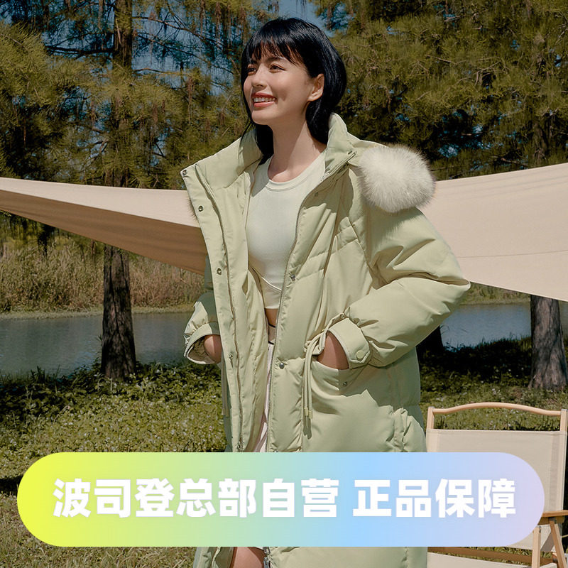 明星同款*波司登2023冬女士中长款羽绒服宽松廓形外套狐狸毛领