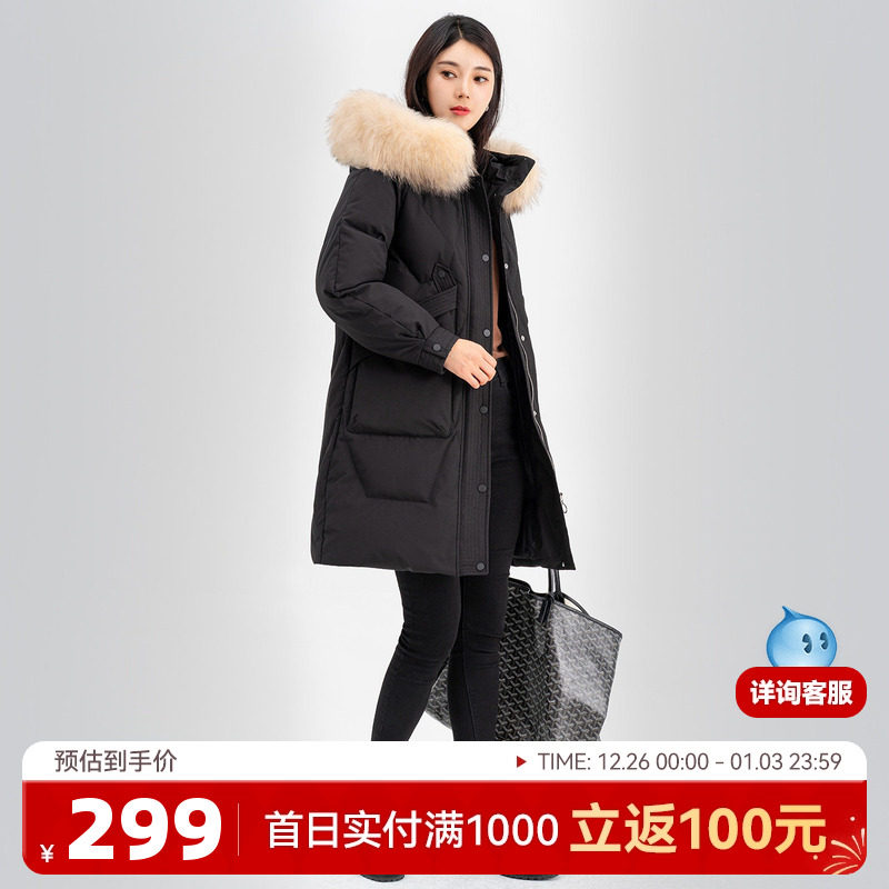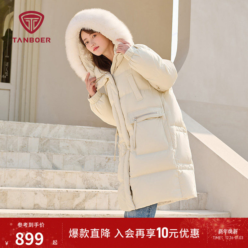 坦博尔羽绒服女款冬季中长款大毛领连帽宽松休闲时尚保暖加厚外套