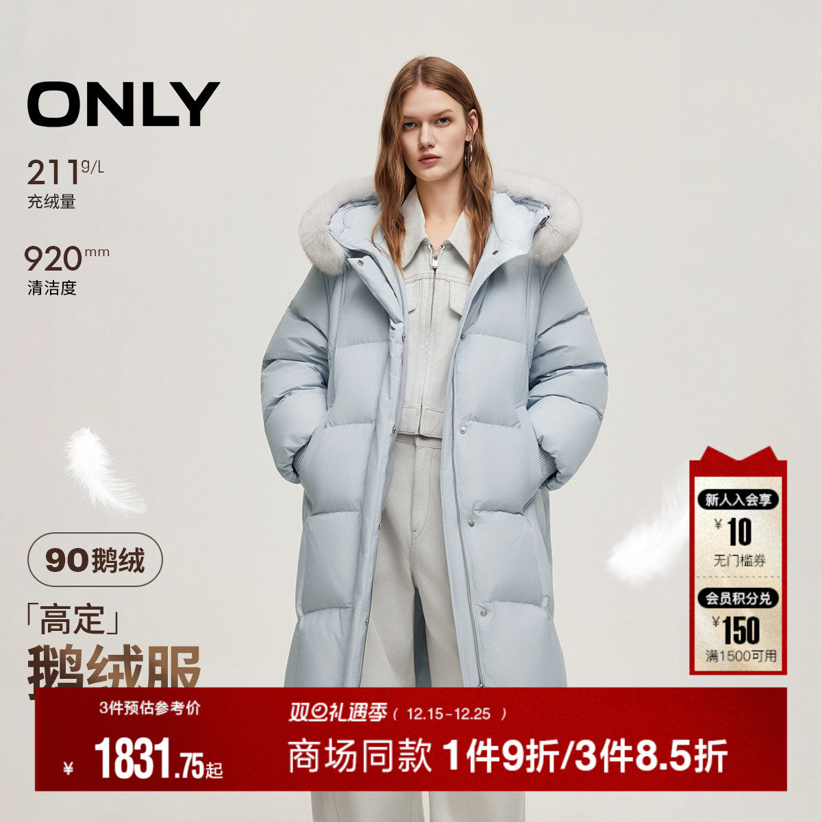 【鹅绒服】ONLY冬季轻奢气质狐狸毛领宽松廓形显瘦中长款羽绒服女