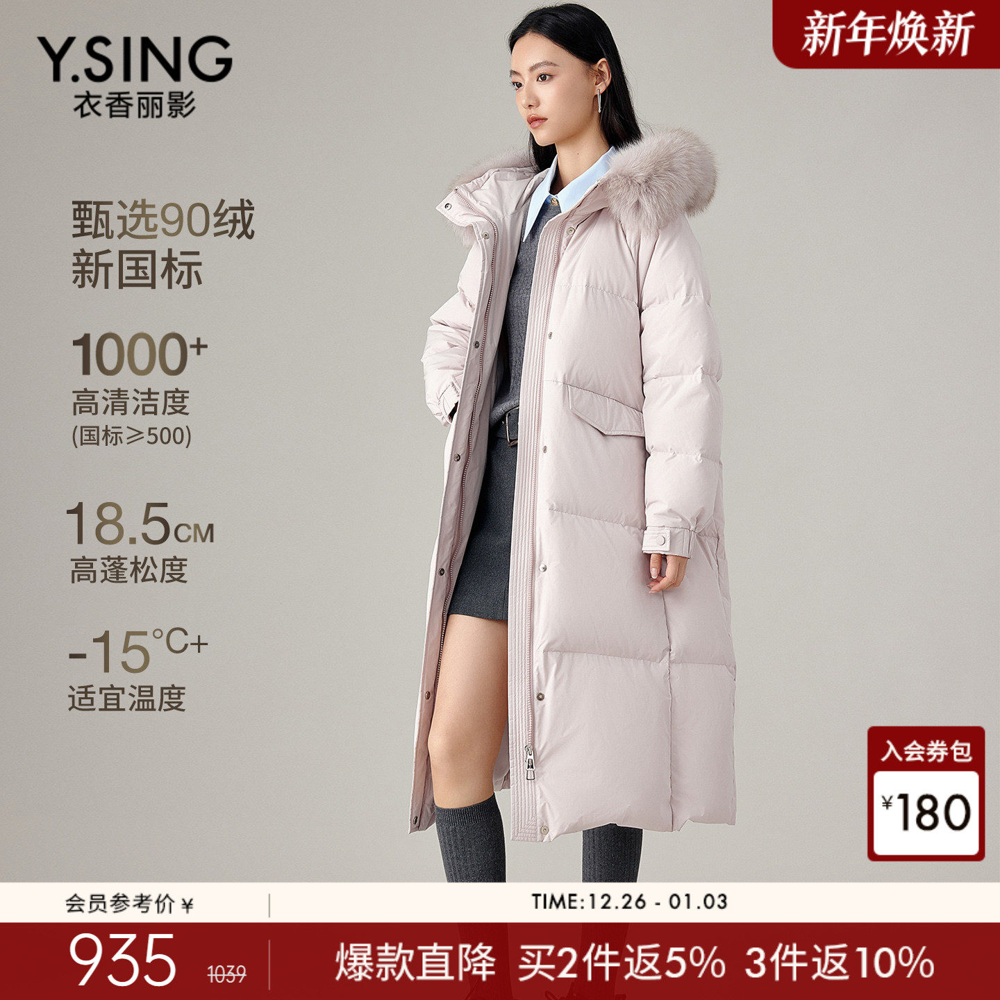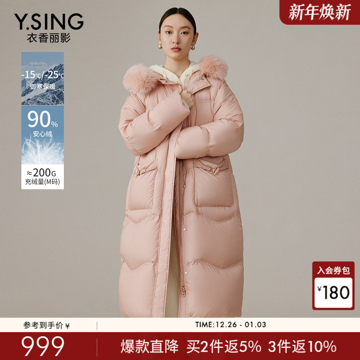 衣香丽影大毛领鸭绒羽绒服女中长款2025年冬季新款粉色宽松厚外套