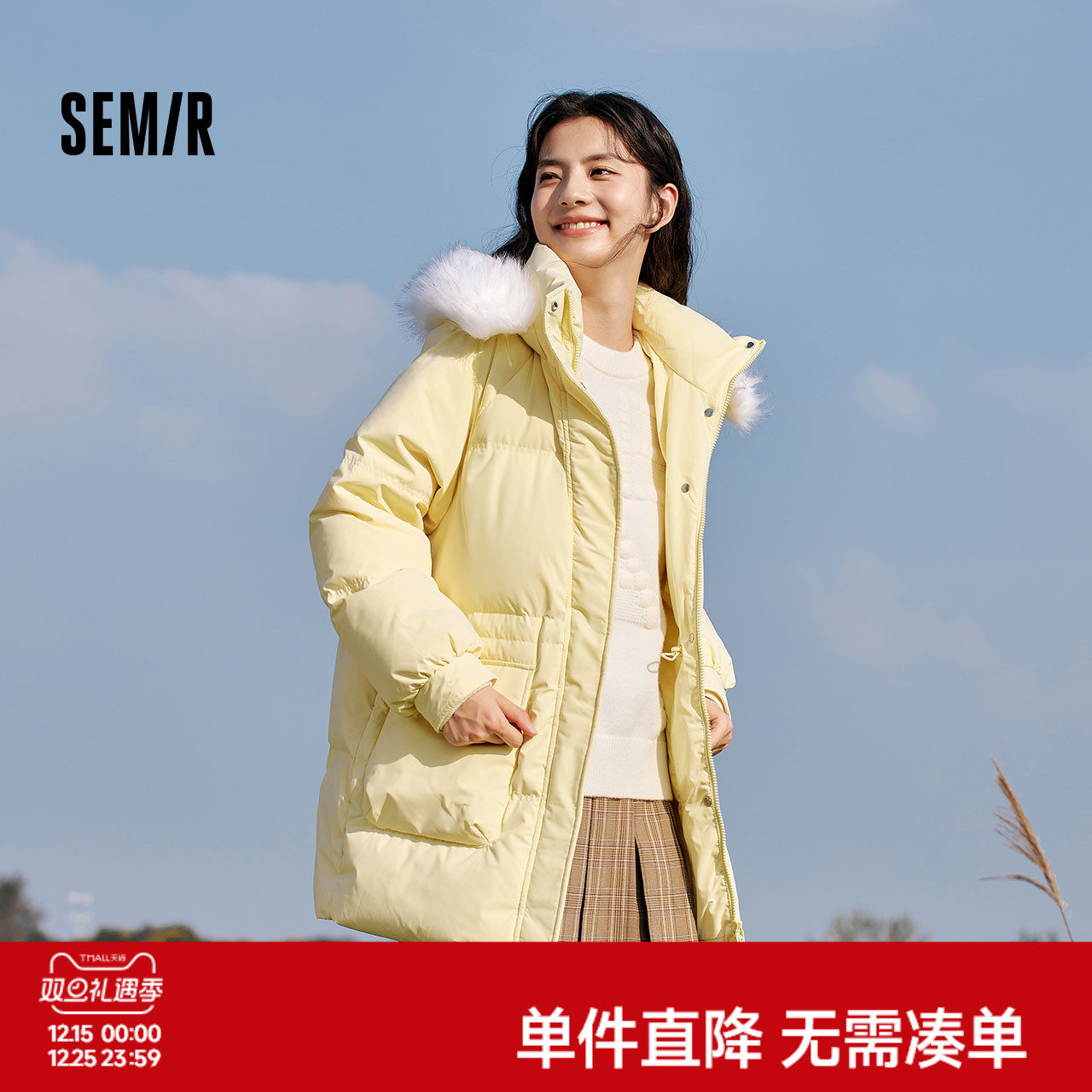 森马羽绒服女连帽毛领厚外套2025冬季新款宽松防水防风冬装中长款