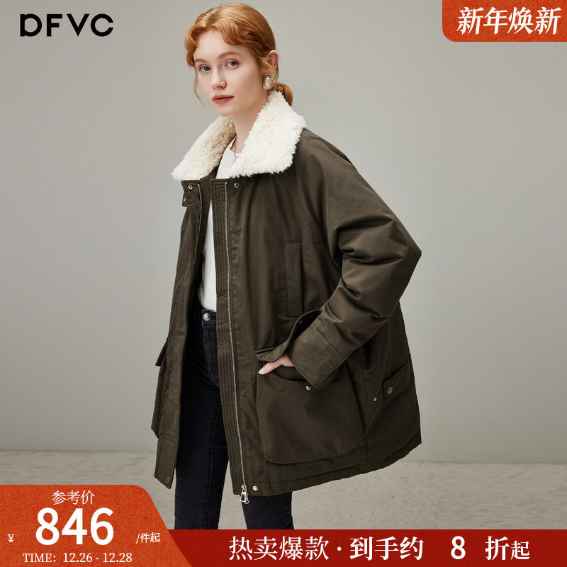 dfvc复古中长款羽绒服女2025年冬季新款宽松毛领加厚保暖派克服