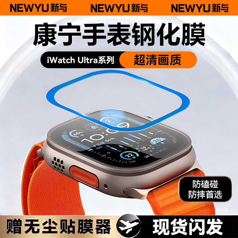 【航空泰坦康宁膜】Newyu适用AppleWatchUltra3苹果手表保护膜Ultra2钢化膜全包iwatch贴膜3/2/1防爆49mm秒贴