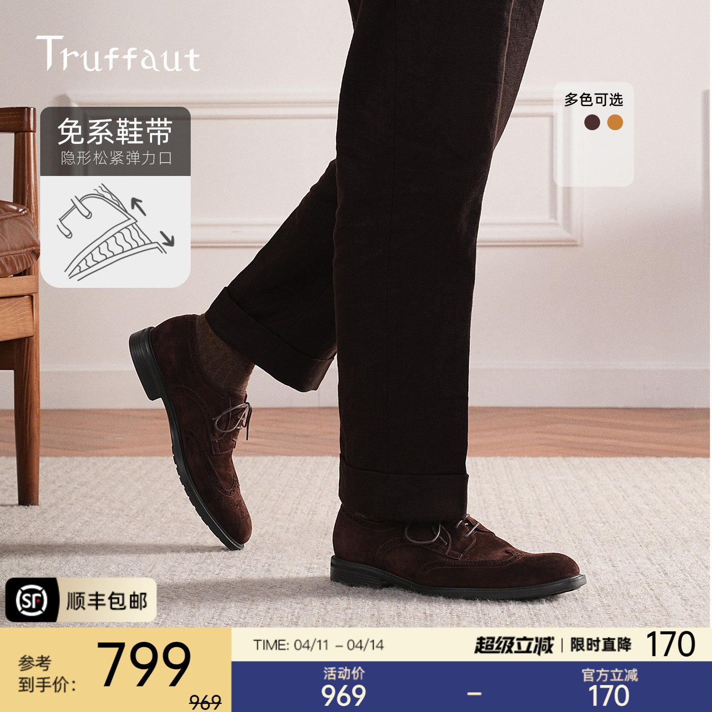 Truffaut反绒皮软底皮鞋男雕花布洛克德比鞋翻毛英伦复古休闲男鞋