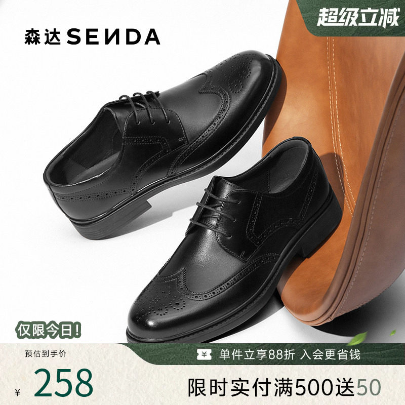 森达男鞋正装皮鞋复古布洛克皮鞋商场同款英伦风新郎皮鞋1QT01CM4