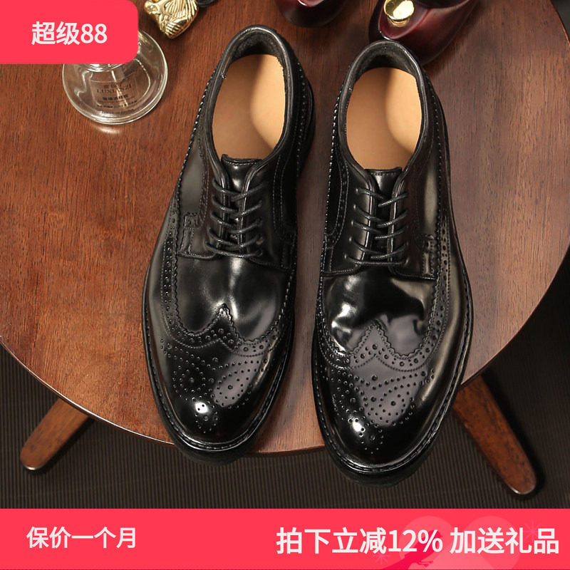 弓长梦秋季新款英伦布洛克雕花皮鞋复古手工头层牛皮商务男结婚鞋
