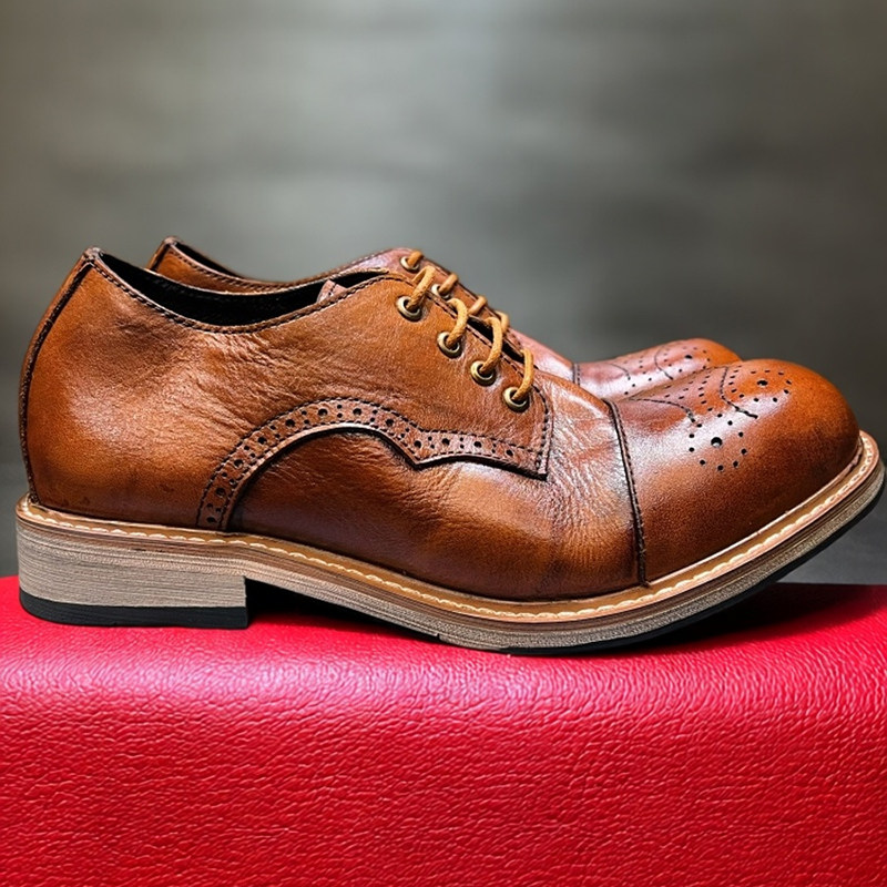 【高档皮质系列】隐形内增高皮鞋孟克鞋布洛克雕花男鞋棕色复古潮