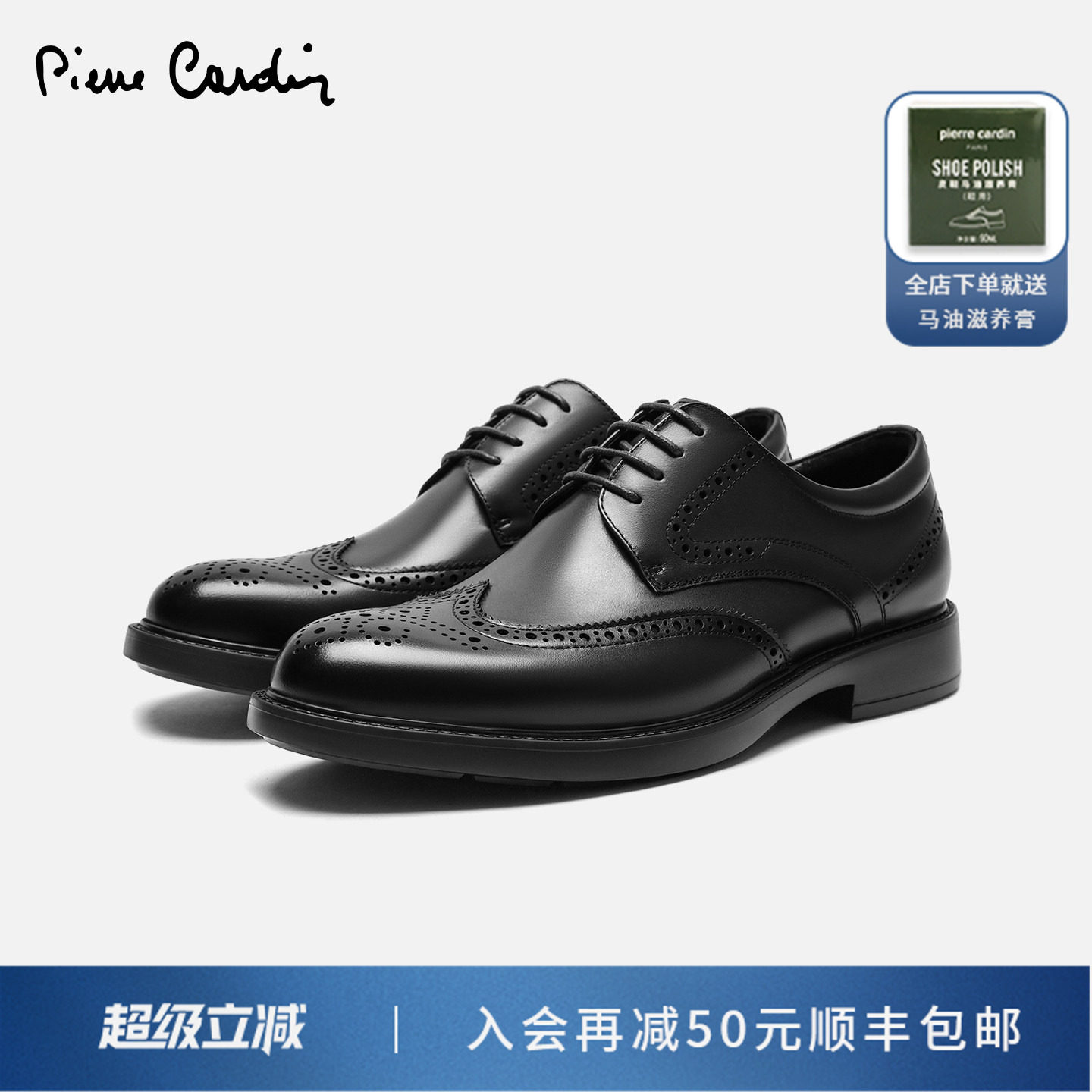 皮尔卡丹男鞋26春秋商务正装皮鞋英伦复古擦色布洛克雕花德比鞋