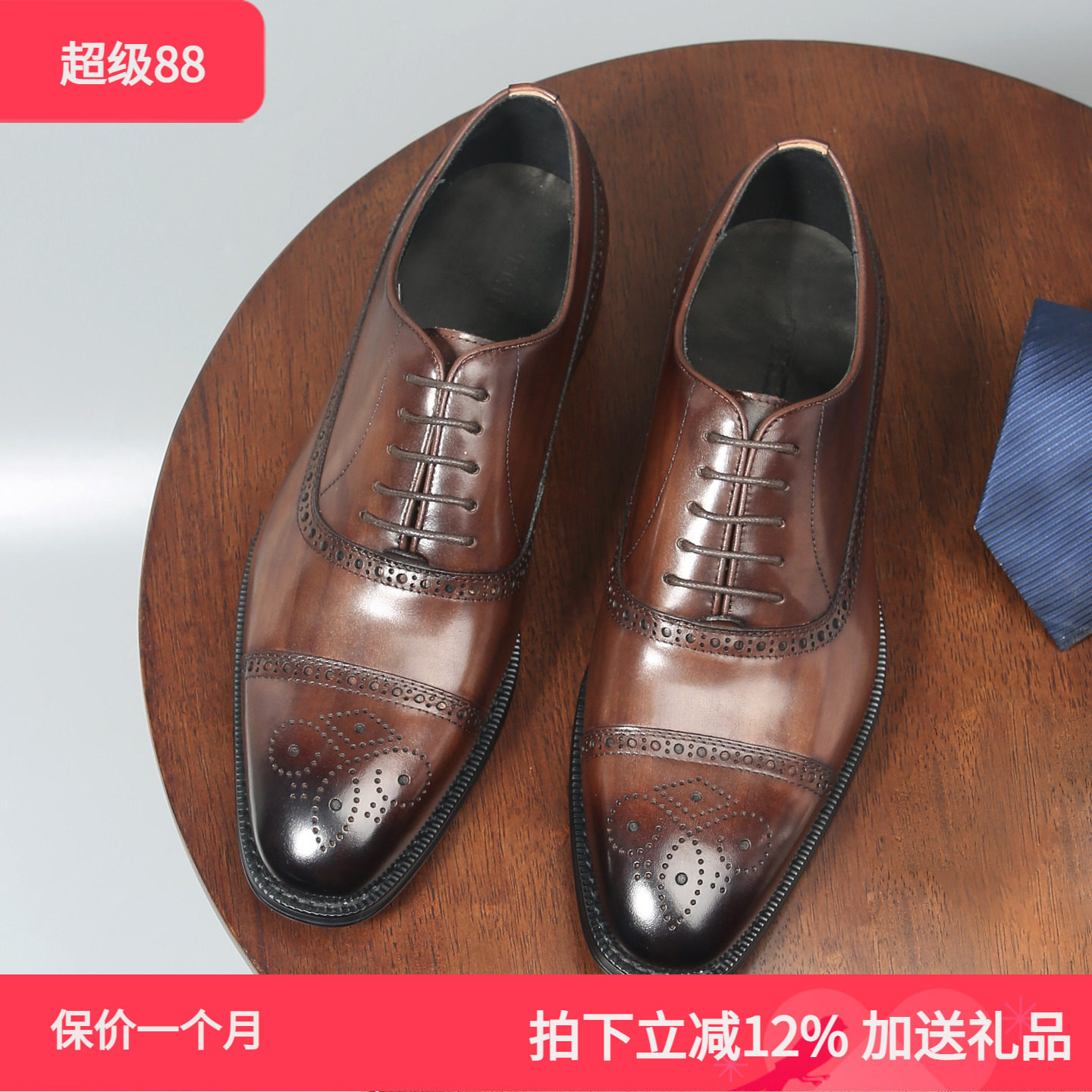 意大利真皮商务皮鞋男头层牛皮复古正装休闲布洛克雕花潮男鞋定制