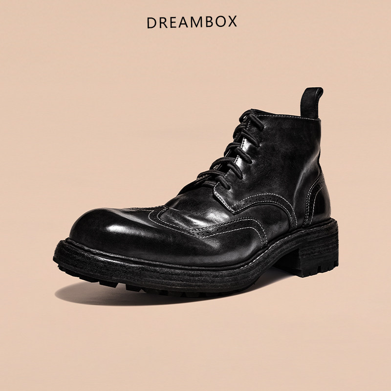 DREAMBOX钧博vibram马皮工装布洛克雕花男靴厚底耐磨复古潮流皮靴