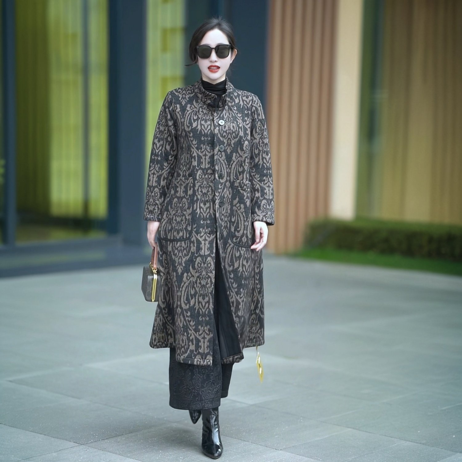 菲梦伊毛呢外套女中长款冬季新款复古高级感加厚修身气质妈妈外套