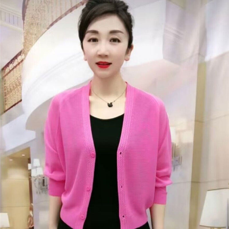时尚减龄七分袖针织开衫女2023夏季新款宽松休闲百搭纯色妈妈外套