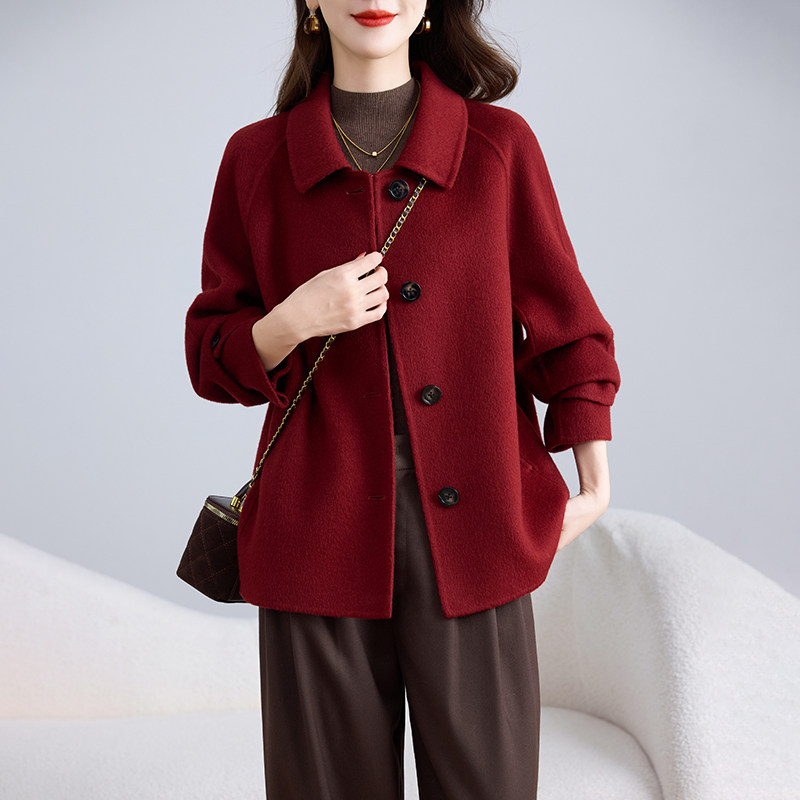 秋冬双面毛呢大衣新款短款高端妈妈小个子毛呢上衣外套时尚宽松女