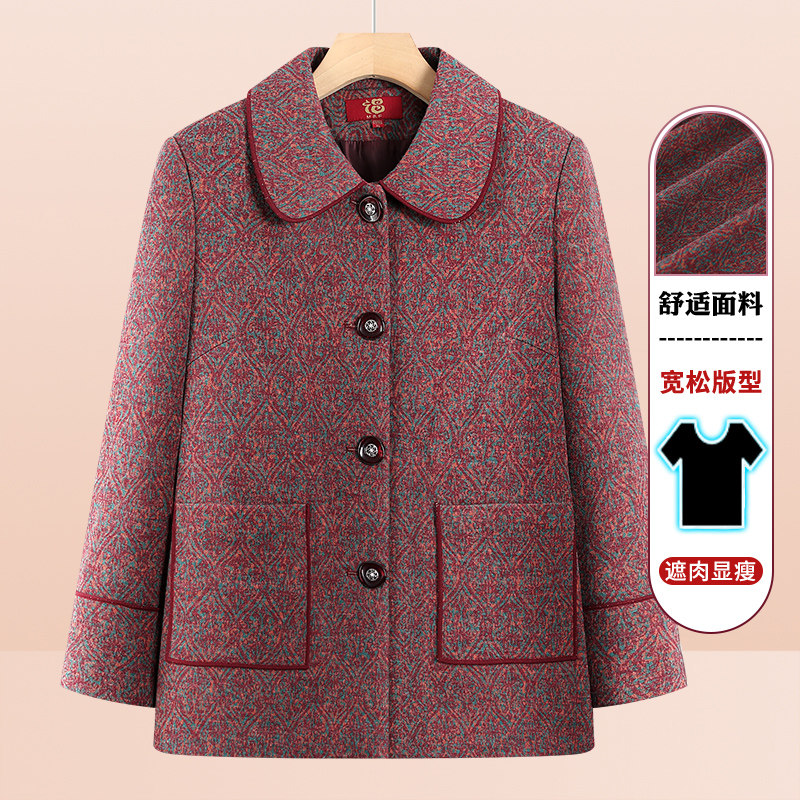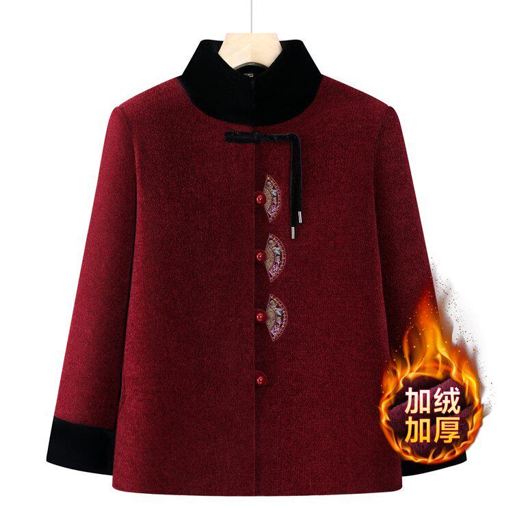 妈妈外套春秋装2024新款奶奶冬季洋气加厚中老年人女装秋冬装上衣