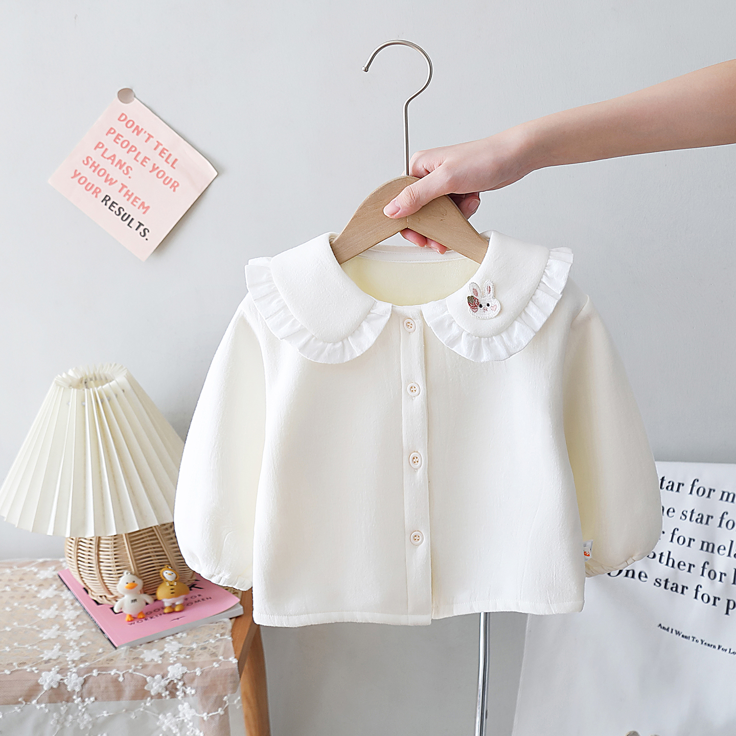 秋冬新款学生百搭娃娃领加绒白衬衫女长袖保暖加厚基础款打底衬衣