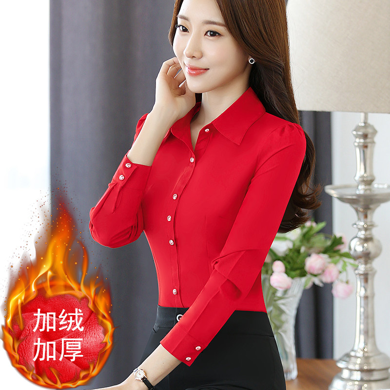 加绒衬衫女长袖保暖冬2026新款韩范修身打底加厚职业衬衣女工作服