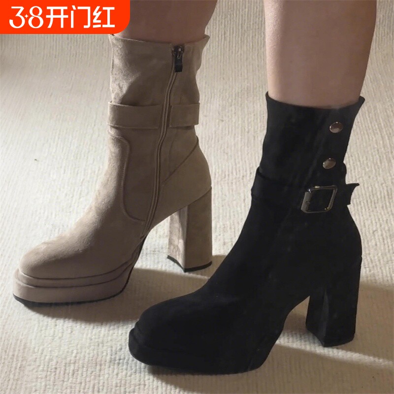 - 高跟鞋秋冬细跟短靴