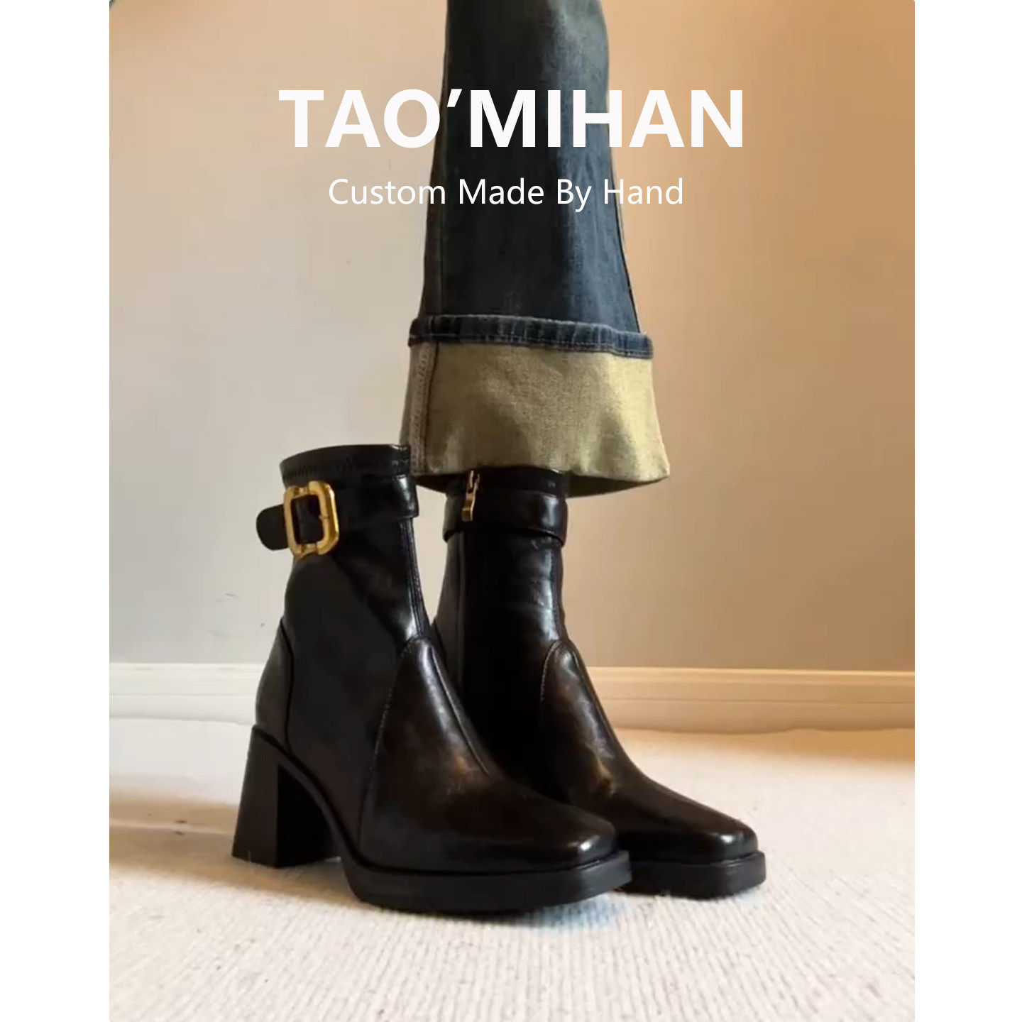 - 高跟粗跟厚底短靴